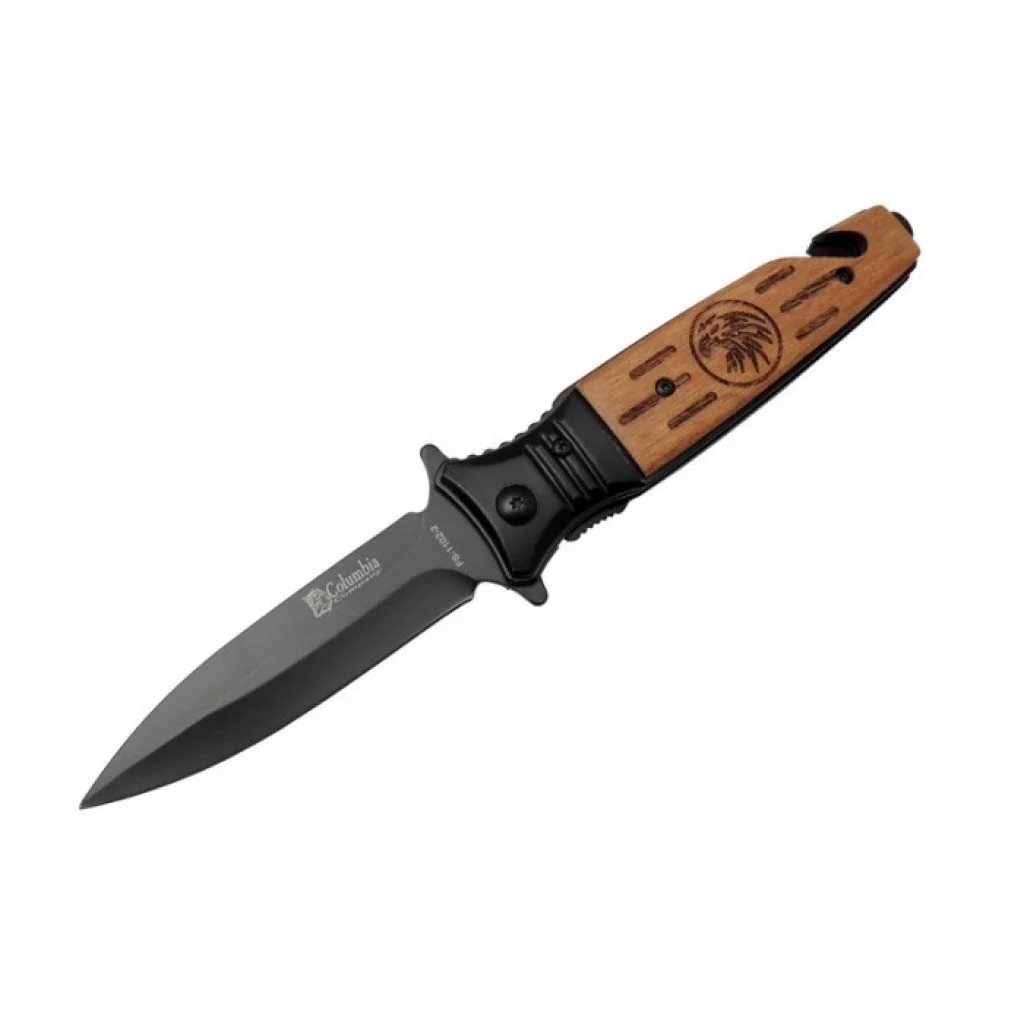 Kurtarma Çakısı Columbia Kartal Emniyet Kilitli Arkadan Tetikli Cam Kırma Aparatı Emniyet Kemeri Kesme Aparatı Kemerde Taşıma Klipsli Metalüzerine Kartal İşlemeli Ahşap Sap Paslanmaz Kaliteli Kurtarma Çakısı..