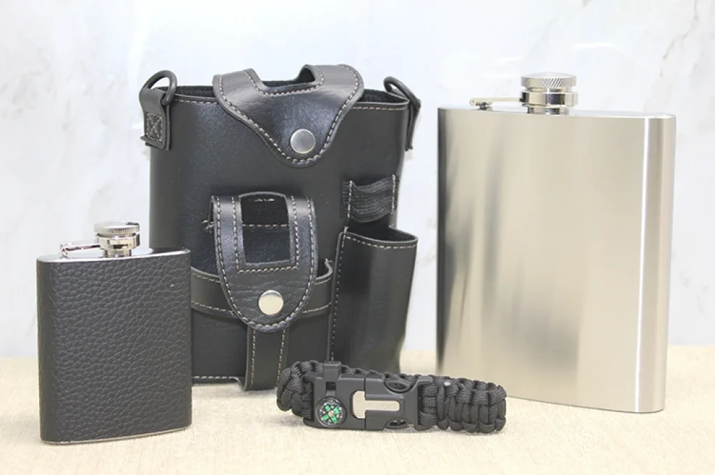Deri Kılıflı Shot Bardaklı Matara TKN3913