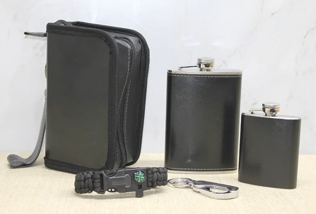 Deri Kılıflı Shot Bardaklı Matara TKN3913