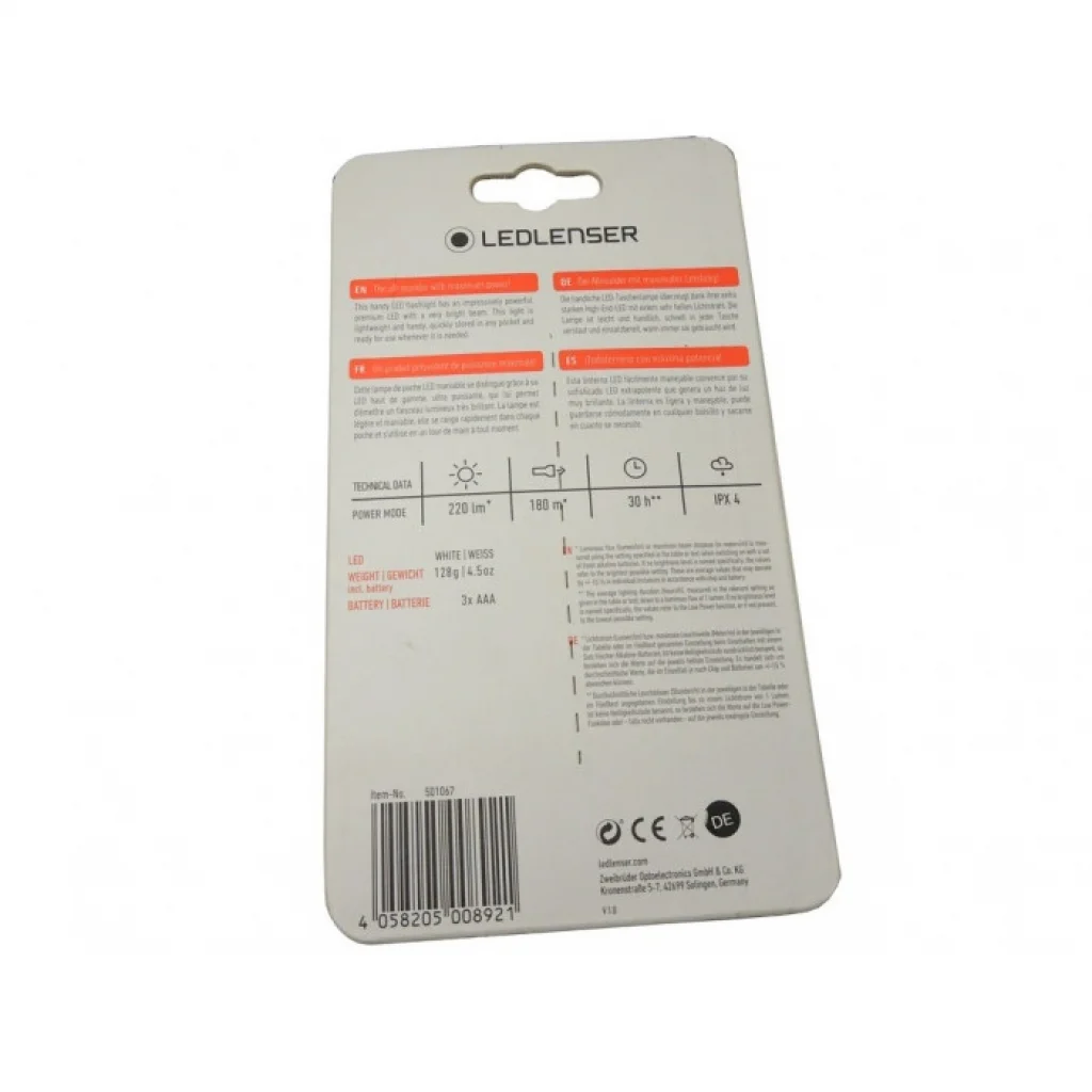 Ledlenser El Feneri "SL-Pro220" - DETAYLI BİLGİ Solid Line SL-Pro220 Sizi ve Kesenizi Koruyan Fener: - Orta-üst segman fener ve çok uygun fiyat - 30 saate kadar tek bir pil setinde - Uçak malzemesi alümniyum kasa - 180 metreye kadar aydınlatma PERFORMANS FL1 STANDARDI MAX MIN 220 LÜMEN 220 LÜMEN 180 180 30 saat 30 saat IPX4 IPX4 DETAYLAR UZUNLUK : 115 mm AĞIRLIK : 128 g ŞARJ EDİLEBLİR : Hayır PİL TÜRÜ : AAA Paket İçerigi - Bileklik ipi - 3x AAA pil - SL-Pro220 El Feneri GARANTİ 2 Yıl LedLenser Garantili