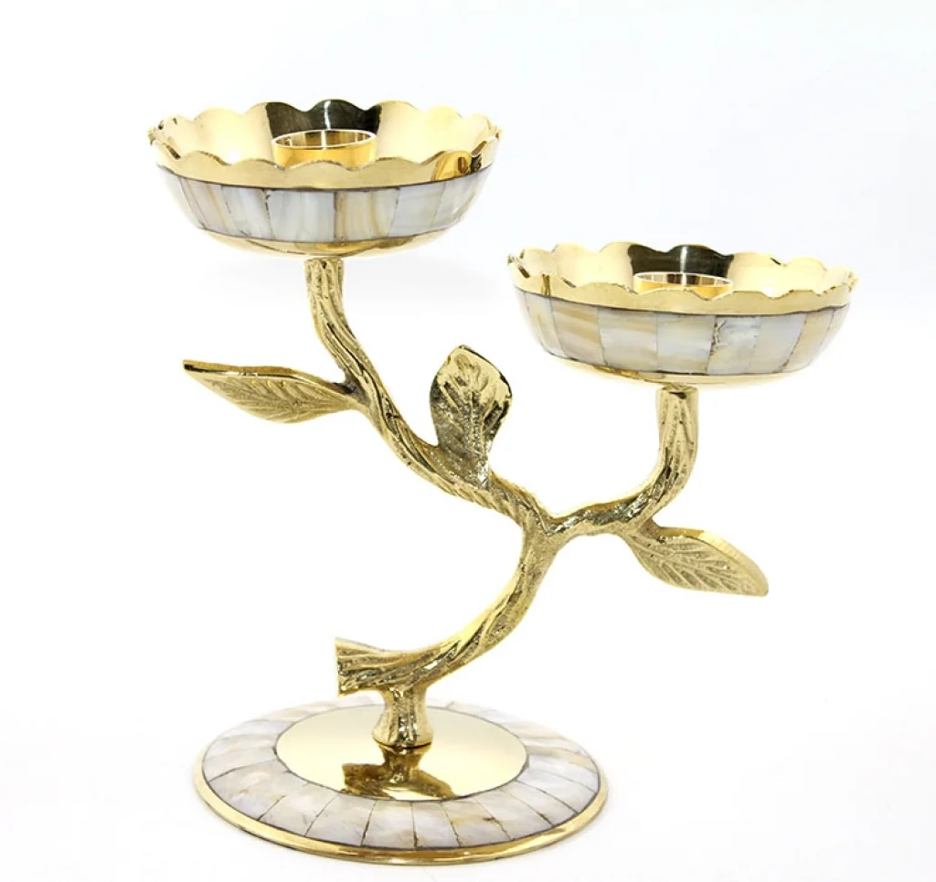 Pirinç Sedefli 2'Li Şamdan 5934