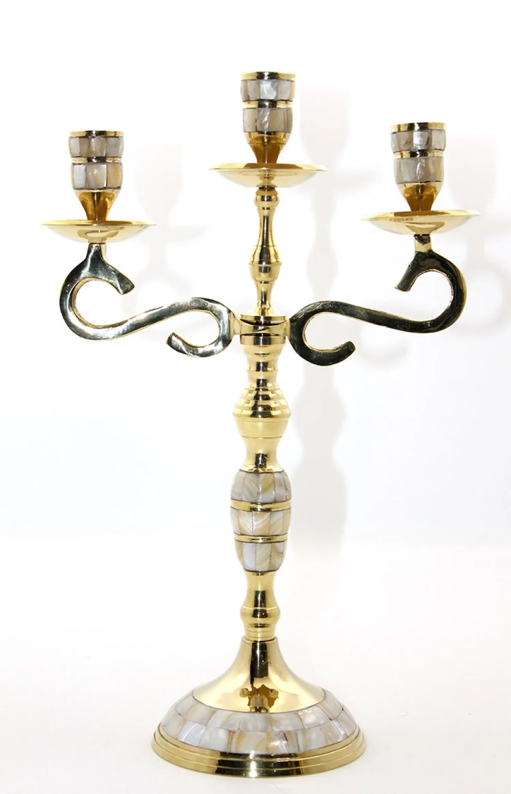 Pirinç Ve Sedef Karışımdan Üretilmiştir. Pirinç Sedefli 3'Lü Şamdan 35*23 Cm