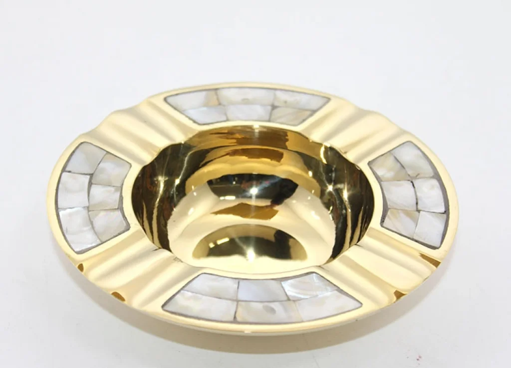 Pirinç Ve Sedef Karışımdan Üretilmiştir. Pirinç Sedefli Küllük 13 Cm